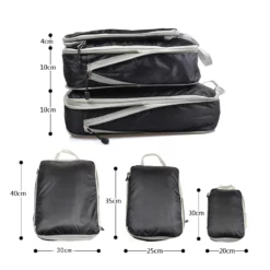 Dieses praktische Set aus faltbaren Packwürfeln sorgt für Ordnung im Koffer und schützt Ihre Kleidung vor Feuchtigkeit. Die komprimierbaren Taschen sparen Platz, während das robuste Nylonmaterial langlebig und leicht zu reinigen ist. Ideal für Reisen, Geschäftsreisen oder den Alltag.